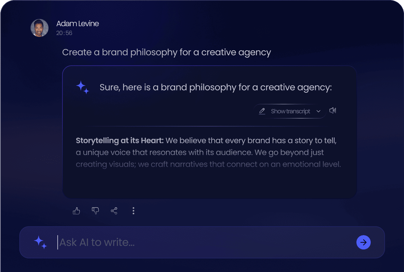 Create faceless reels and explainer videos that look professional. Just add a script, pick an avatar, and publish to any platform.